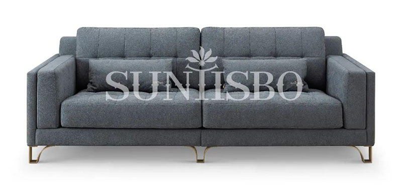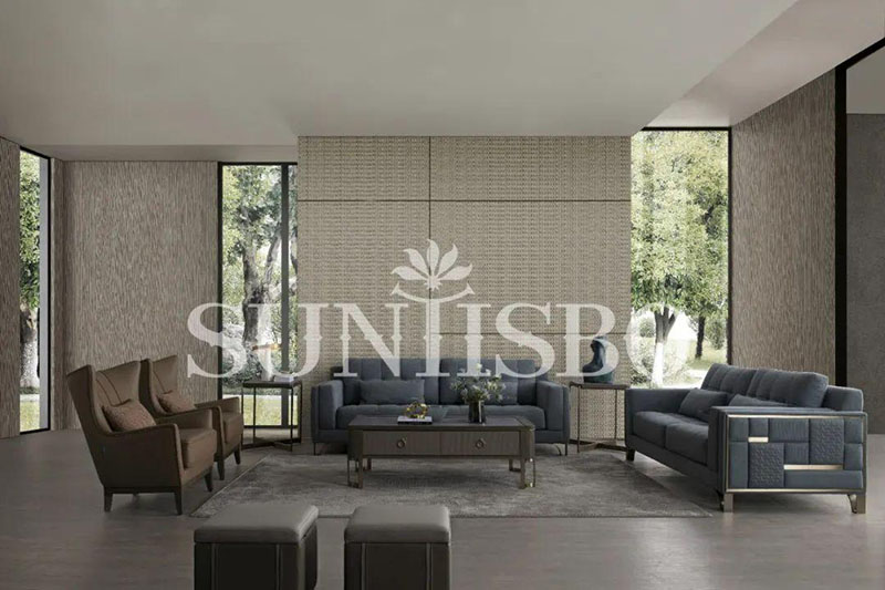 沙發(fā)采用細膩的顆粒感皮料,不僅增加了霧霾藍色彩的飽和度,也在視覺上充實了空間的安全感。輪廓,扶手皆為干練利落的直線,放眼望去不僅簡化了空間,也傳達著對精簡生活的追求。