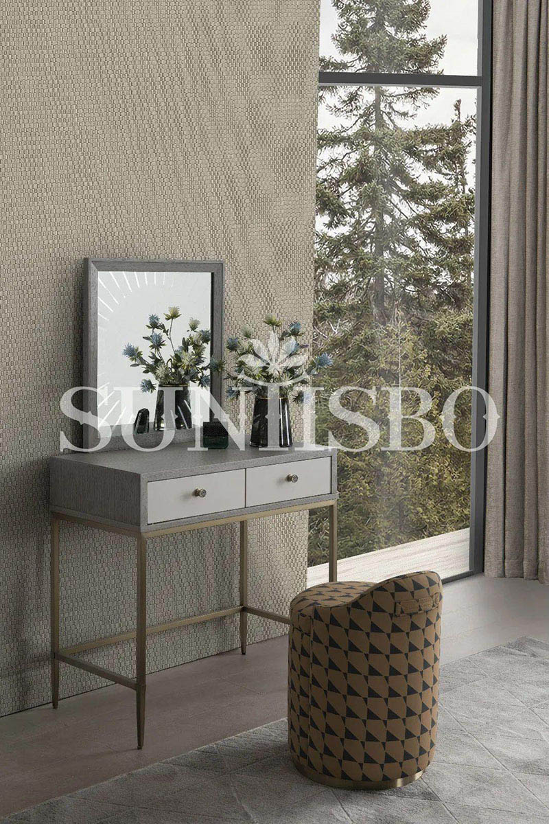面板鑲嵌的編織紋皮質(zhì)在實木的基礎上進行雕刻,輔以極佳的傳統(tǒng)編織藝術(shù),讓空間倍顯溫潤時尚感。