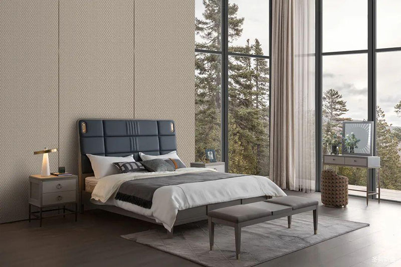 主臥擁有貼近自然的魔力,藍(lán)色床屏色彩與外界的自然綠相互吸引,凹凸的線性塊狀軟包設(shè)計(jì),線條輕盈又流暢,打造了臥室背景強(qiáng)烈的立體感,金屬包裹的感應(yīng)小夜燈,守護(hù)你的每個(gè)夜晚,令睡眠更具安全感。