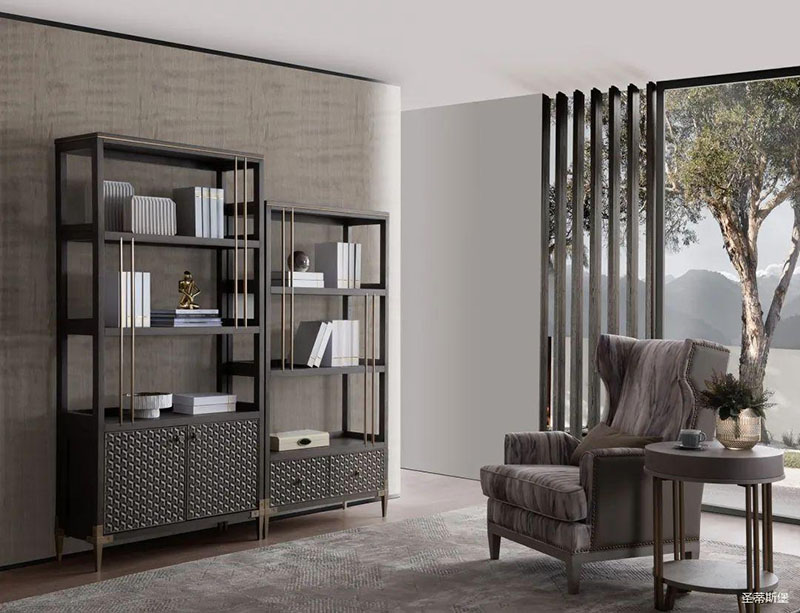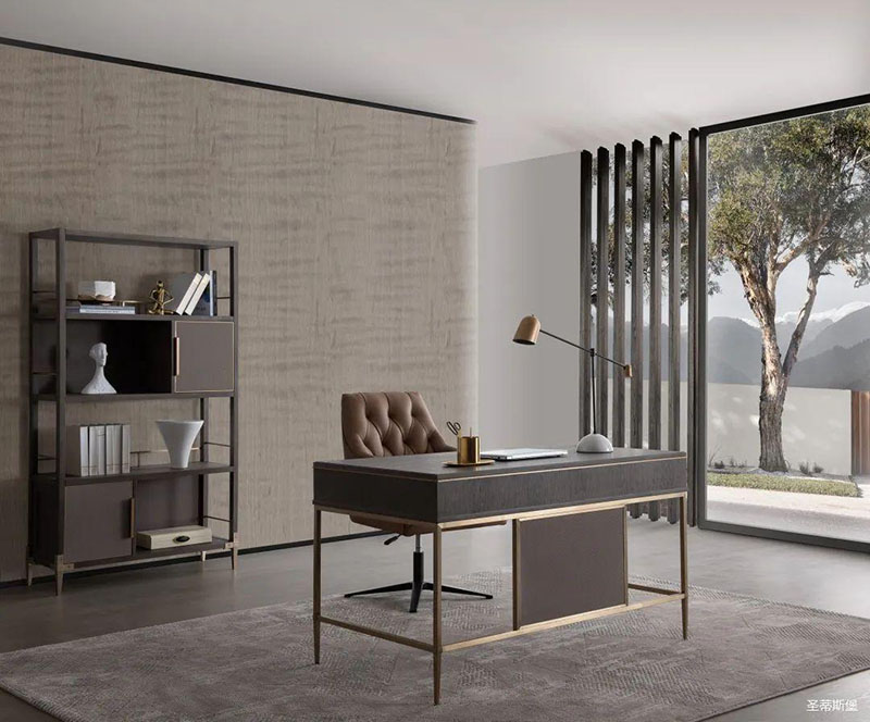 沉靜雅致的書(shū)房空間,溫潤(rùn)實(shí)木與硬朗金屬線條相互配合,運(yùn)用基礎(chǔ)幾何,打造空間的高級(jí)感。輕奢質(zhì)感緩緩流淌,書(shū)籍整齊,擺件精致,無(wú)一不追求著精致細(xì)節(jié)與極致的品味,營(yíng)造出時(shí)尚與沉穩(wěn)并列的氛圍,詮釋著居者對(duì)是生活環(huán)境的內(nèi)在追求。