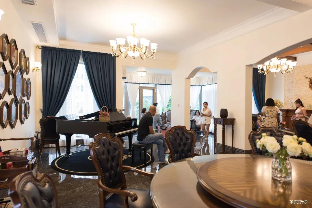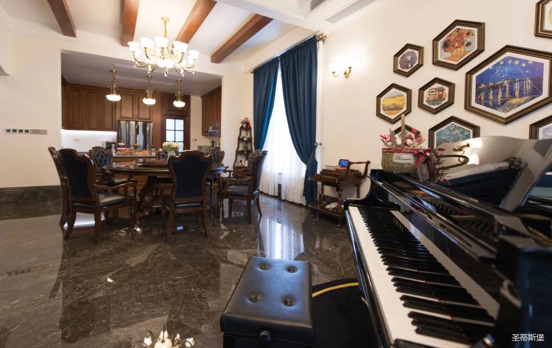 餐廳視線末端是一架鋼琴,與窗外景色相結(jié)合,擴(kuò)大了視野,制造出移步易景的生活體驗(yàn)。