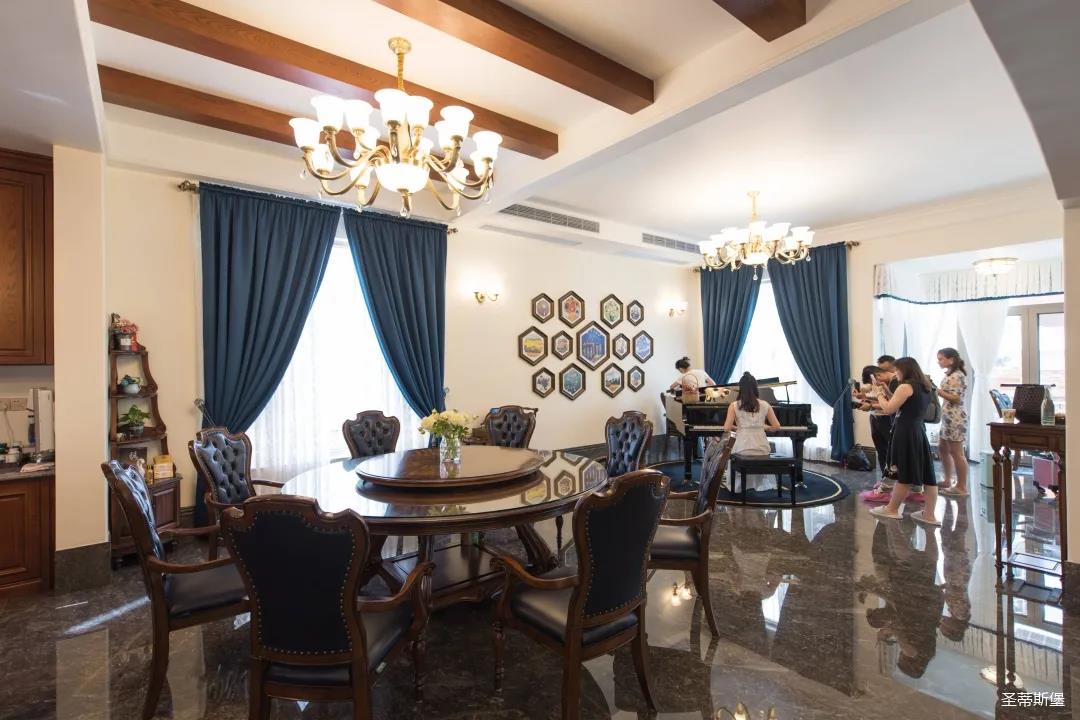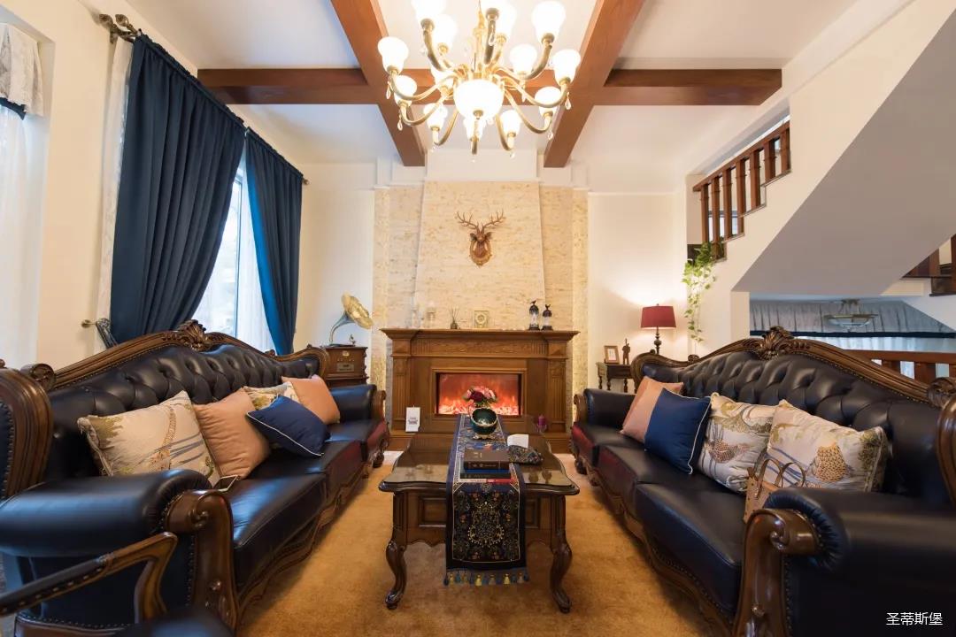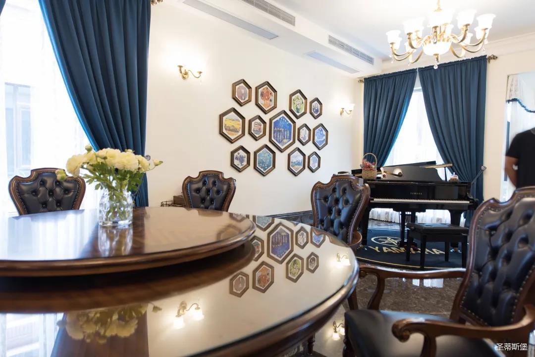 業(yè)主喜歡沉穩(wěn)的美式新古典風(fēng)格,整體統(tǒng)一的色調(diào),呈現(xiàn)了一種莊重的典雅感。醇厚的實(shí)木真皮沙發(fā),以古典的手法描繪出一種略帶復(fù)古的時(shí)尚奢華。一抹深藍(lán)迂回婉轉(zhuǎn)映照著空間的色系,明暗相對,符合著現(xiàn)代審美,卻又不顯沉悶。轉(zhuǎn)角處的一臺復(fù)古唱片機(jī),還原了對音樂傾心的浪漫,抬起撥桿將唱針落下,隨著唱片的轉(zhuǎn)動和音樂的響起,美好的一天就此開始。