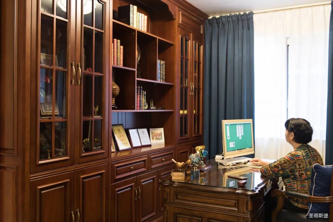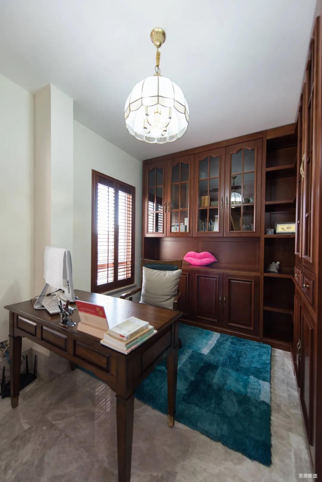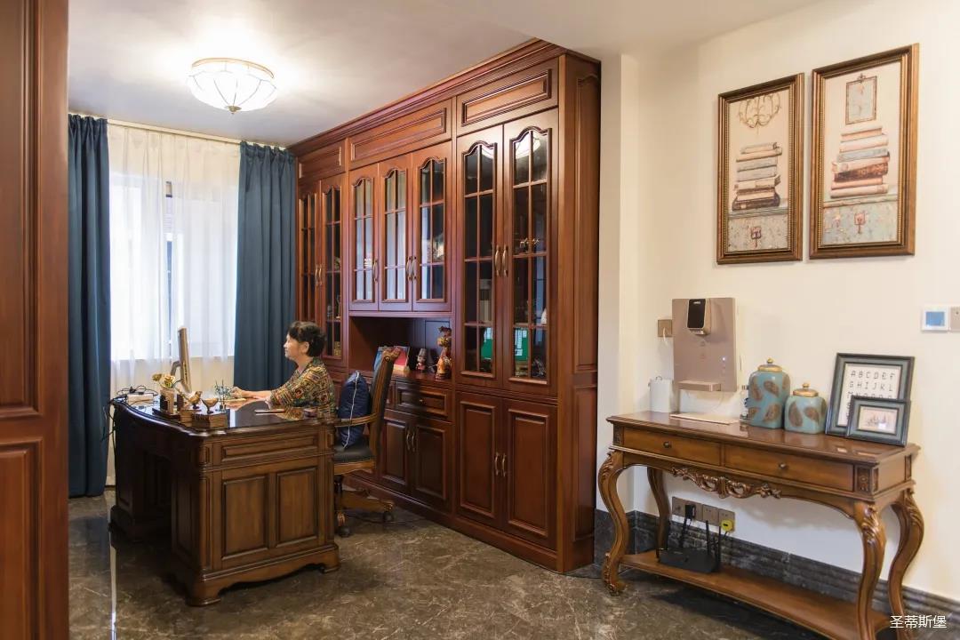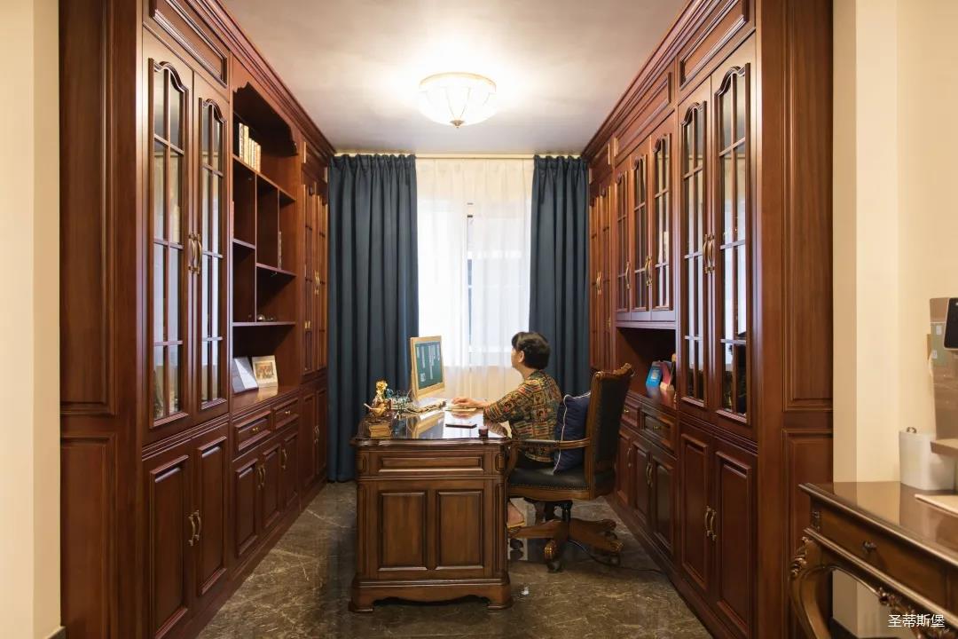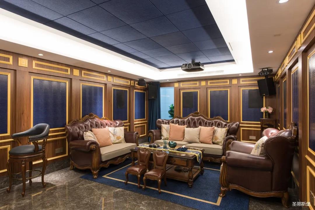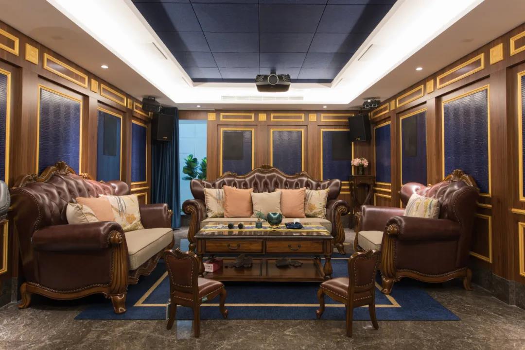 業(yè)主夫婦非常熱情好客,平時(shí)工作之余也會在家里邀三兩好友一起觀影,觀影室的整體設(shè)計(jì)容納著濃烈的古色古香,長方形圖案排列搭配復(fù)古的家具與配飾,精細(xì)的雕花藝術(shù),于細(xì)節(jié)之間演繹著精致生活。不管時(shí)光如何輾轉(zhuǎn)變換,家的定義從不曾改變,它撫慰著我們的心靈,承載著我們的喜樂,從細(xì)膩的質(zhì)感中感知家的點(diǎn)滴變化,才是對生活最真實(shí)的寫照。