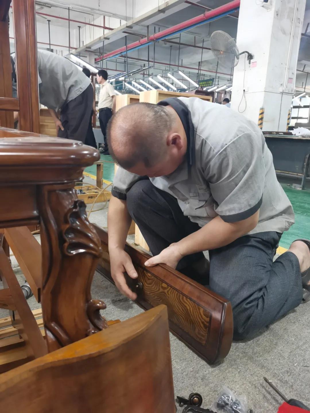七月,一個(gè)熱情似火的季節(jié),一串串滑落的汗珠渲染著現(xiàn)場(chǎng)安靜而緊張氣氛。比賽現(xiàn)場(chǎng),來(lái)自江門金海馬商場(chǎng)和南城美新名家具商場(chǎng)的參賽選手各司其職,聚精會(huì)神地投入比賽,憑借著專業(yè)的技能,一絲不茍的將一個(gè)個(gè)小部件嫻熟而準(zhǔn)確無(wú)誤地組裝起來(lái),打造高質(zhì)量,細(xì)品質(zhì)的家具產(chǎn)品。